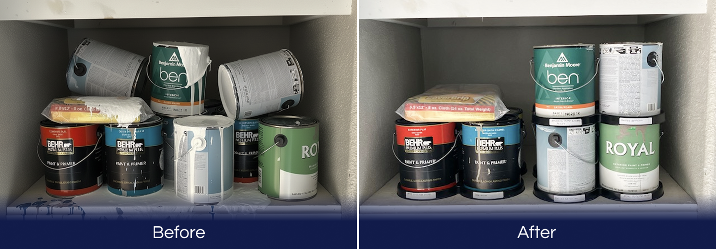 "Finally an easy way to organize all my paint cans in my shed. No more stains or mess and I can easily find what I need when I want to do a quick touch up!"