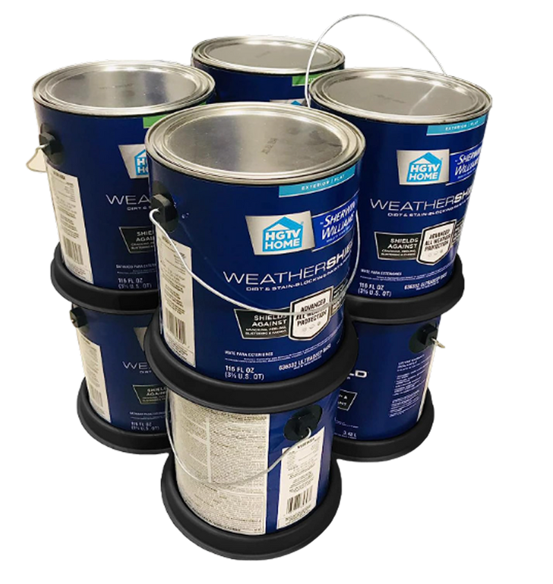 Patented stackable trays that organize, label, and protect your paint cans. No more rust rings. No more guessing.